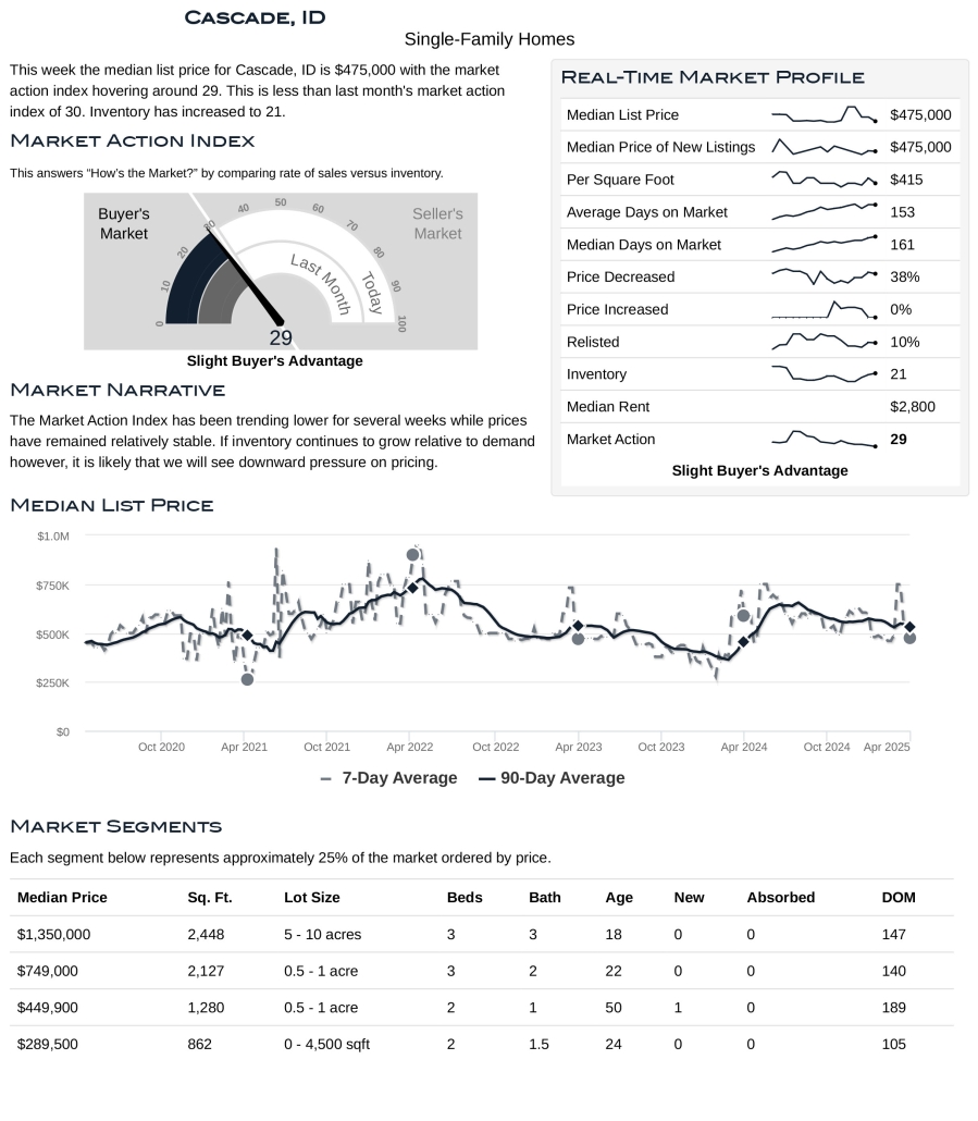 Blog, Market Stats, Real EstateValley County Market Stats | APR 2025 Interested in what the real estate market looks like in Valley County? Check out this detailed market snapshot! McCall Donnelly Cascade Information presented byAltos Research April 7, 2025 https://dirtroads2lakehomes.northwestminute.com/wp-content/uploads/sites/83/2025/04/Market-April-2025.jpg 560 1000 Admin http://dirtroads2lakehomes.northwestminute.com/wp-content/uploads/sites/83/2025/05/Dirt-Roads-2-Lake-Homes-Logo-copy-1.png Admin2025-04-07 12:46:042025-04-08 10:18:09Valley County Market Stats | APR 2025